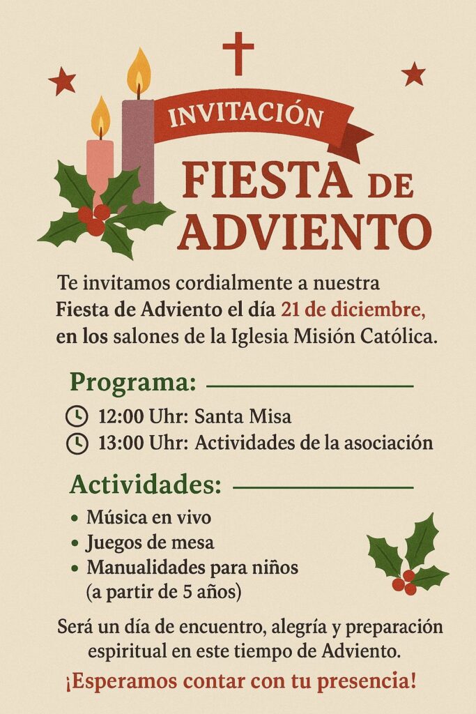 Somos una organización sin ánimo de lucro cuyo objetivo es promover la vida comunitaria de los fieles de la Misión Católica Hispanohablante de Berlín y de todas las personas interesadas. Promovemos y organizamos proyectos que apoyan el mantenimiento de nuestra iglesia y ayudan a nuestra parroquia y a las comunidades de nuestros países de origen.